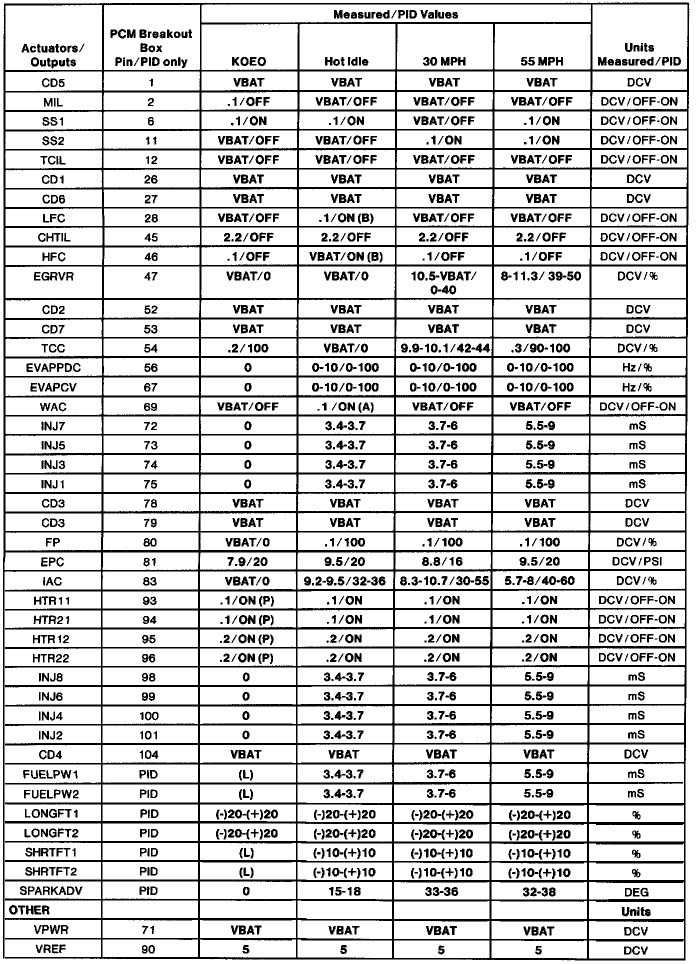 - The Typical Diagnostic Reference Value Charts do not display fault PIDs. These are PIDs which indicate a hard fault with the circuit. They display a value of "YES" or "NO" and are PIDs ending with an "F". These do not include EVAPPF, FF, MAF or VREF.