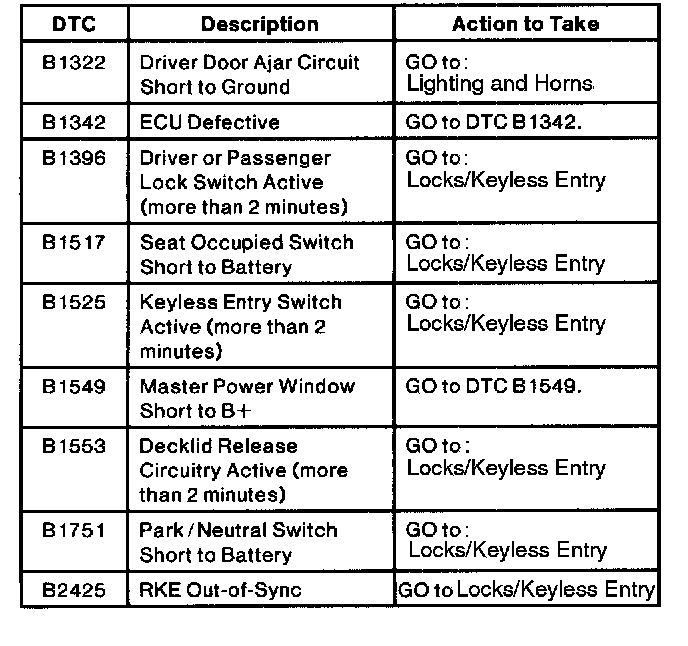 Driver Door Module Diagnostic Trouble Code Index