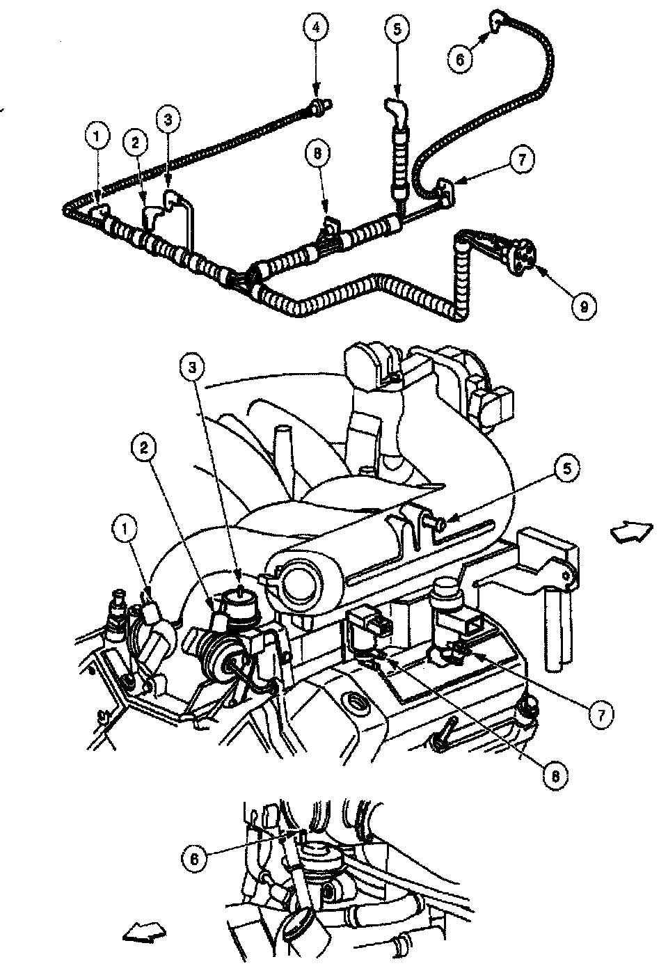 The Vehicle Emission Control Information (VECI) decal shows the components of the emission control system with the correct vacuum hose routing. The VECI decal shows the color stripe of the vacuum hoses.