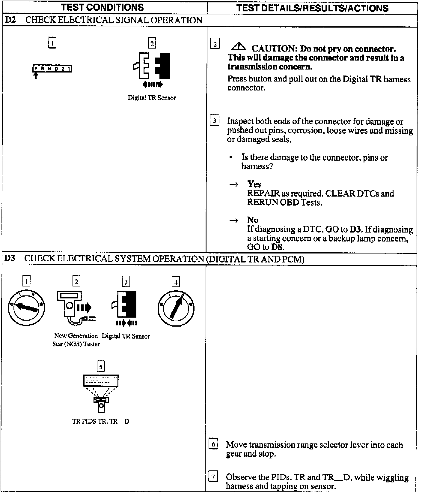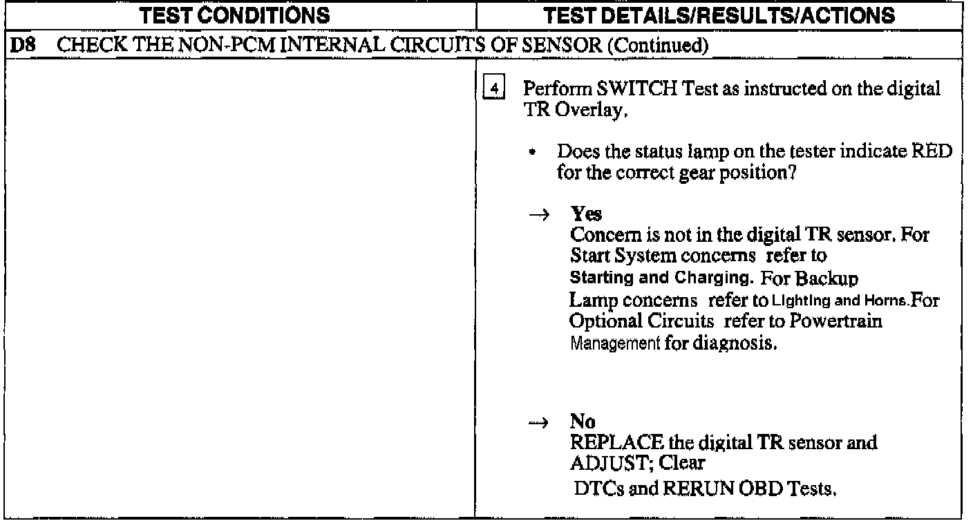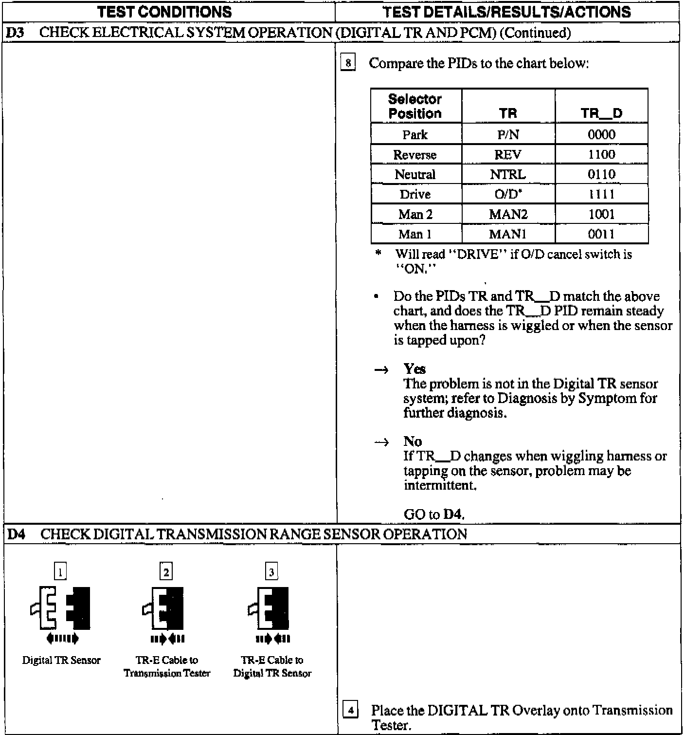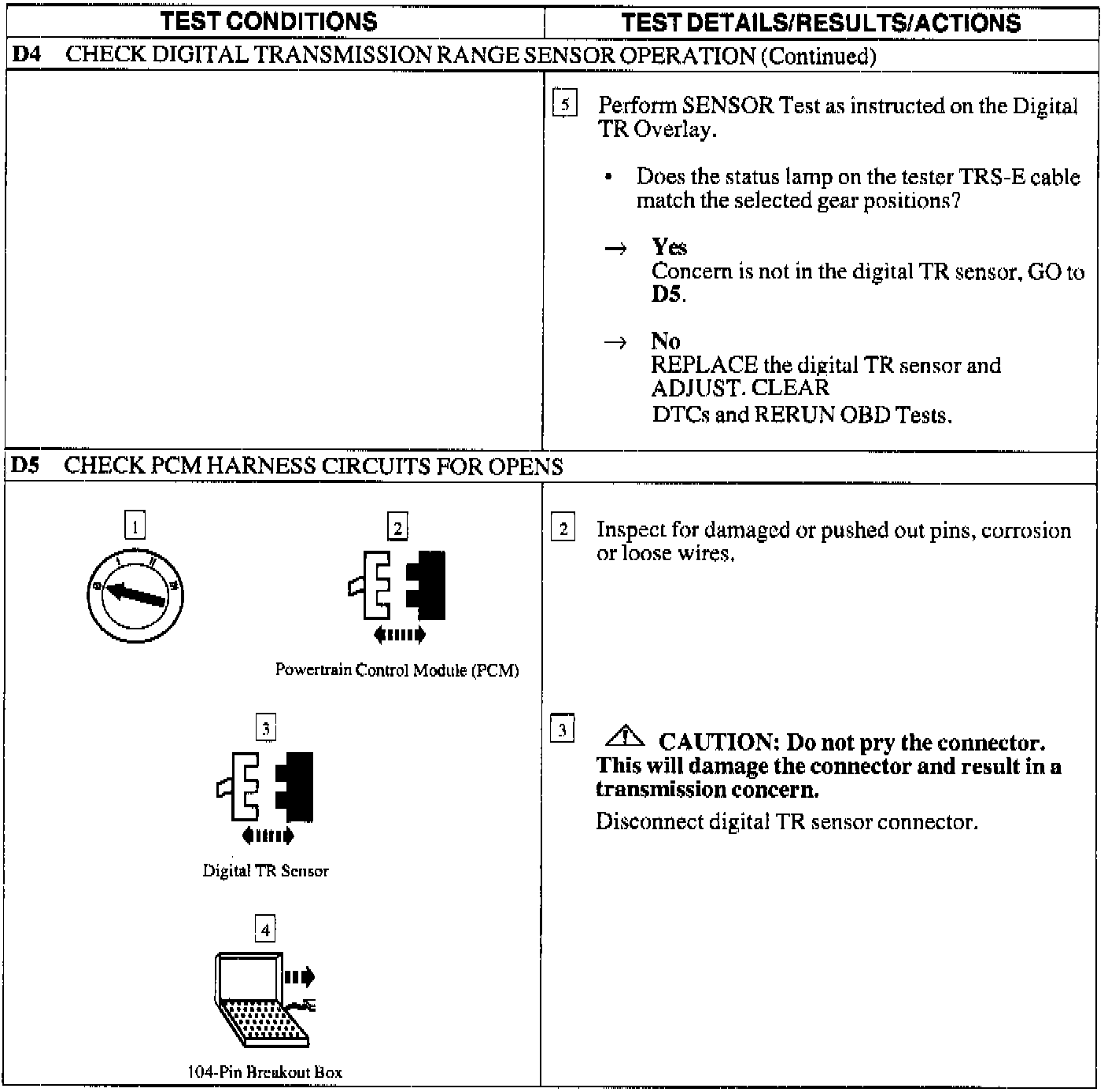 NOTE: Refer to Digital Transmission Range (TR) Sensor Illustration preceeding these pinpoint tests.
