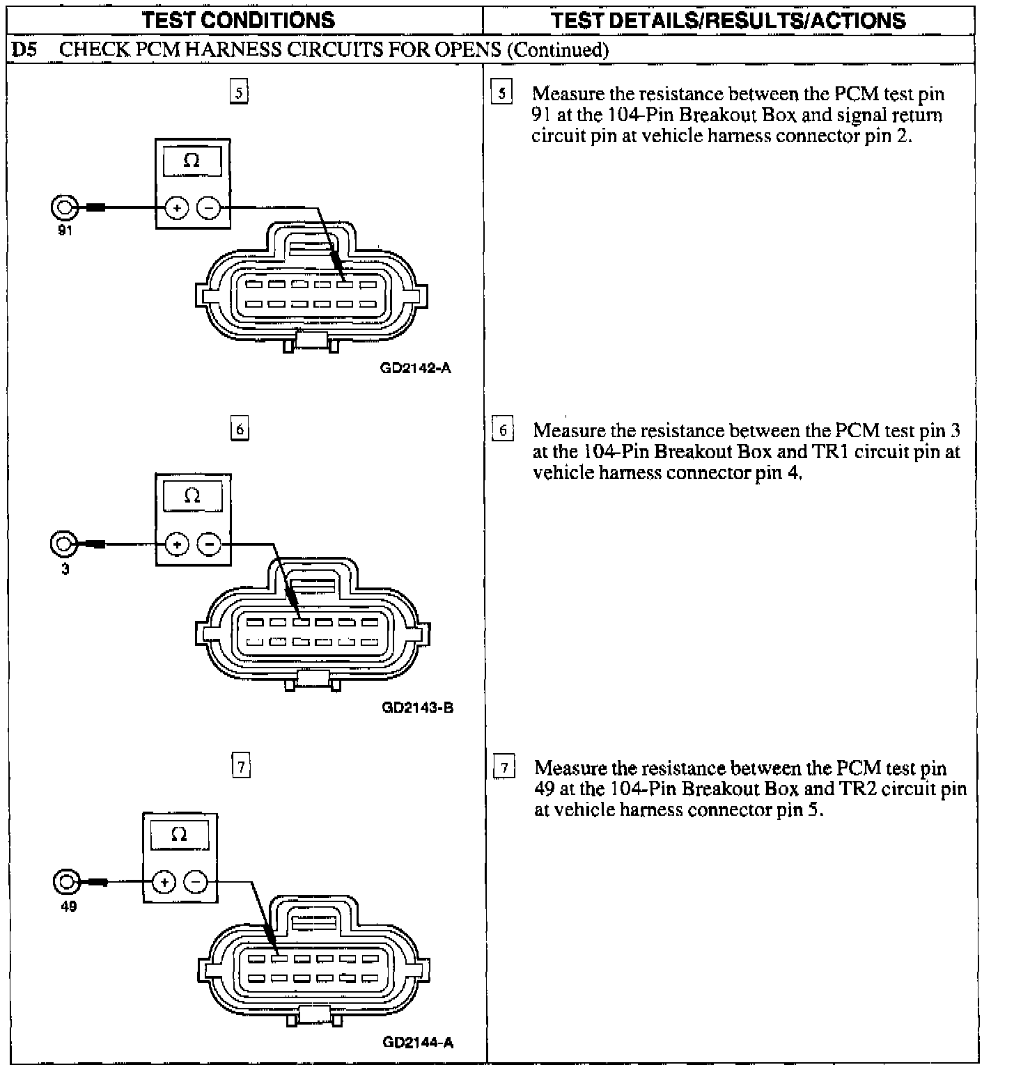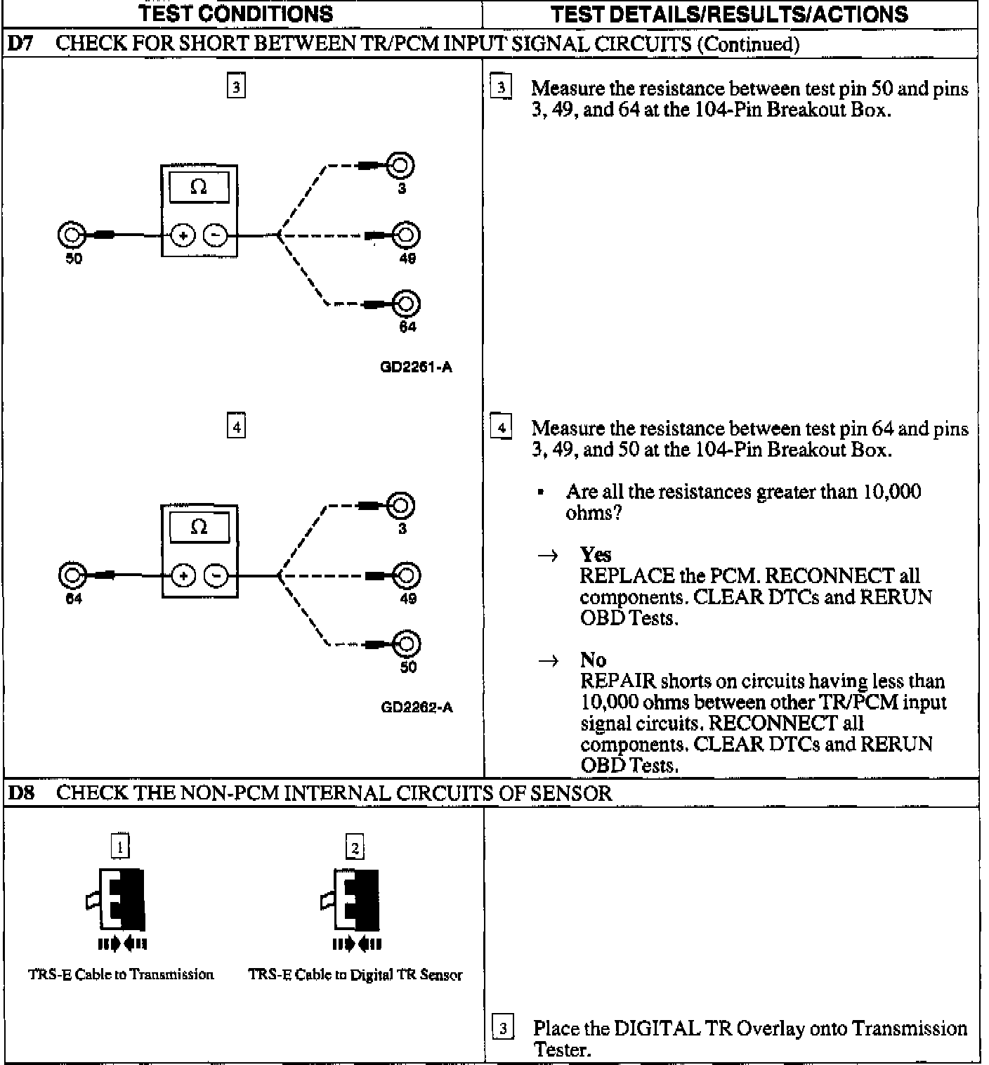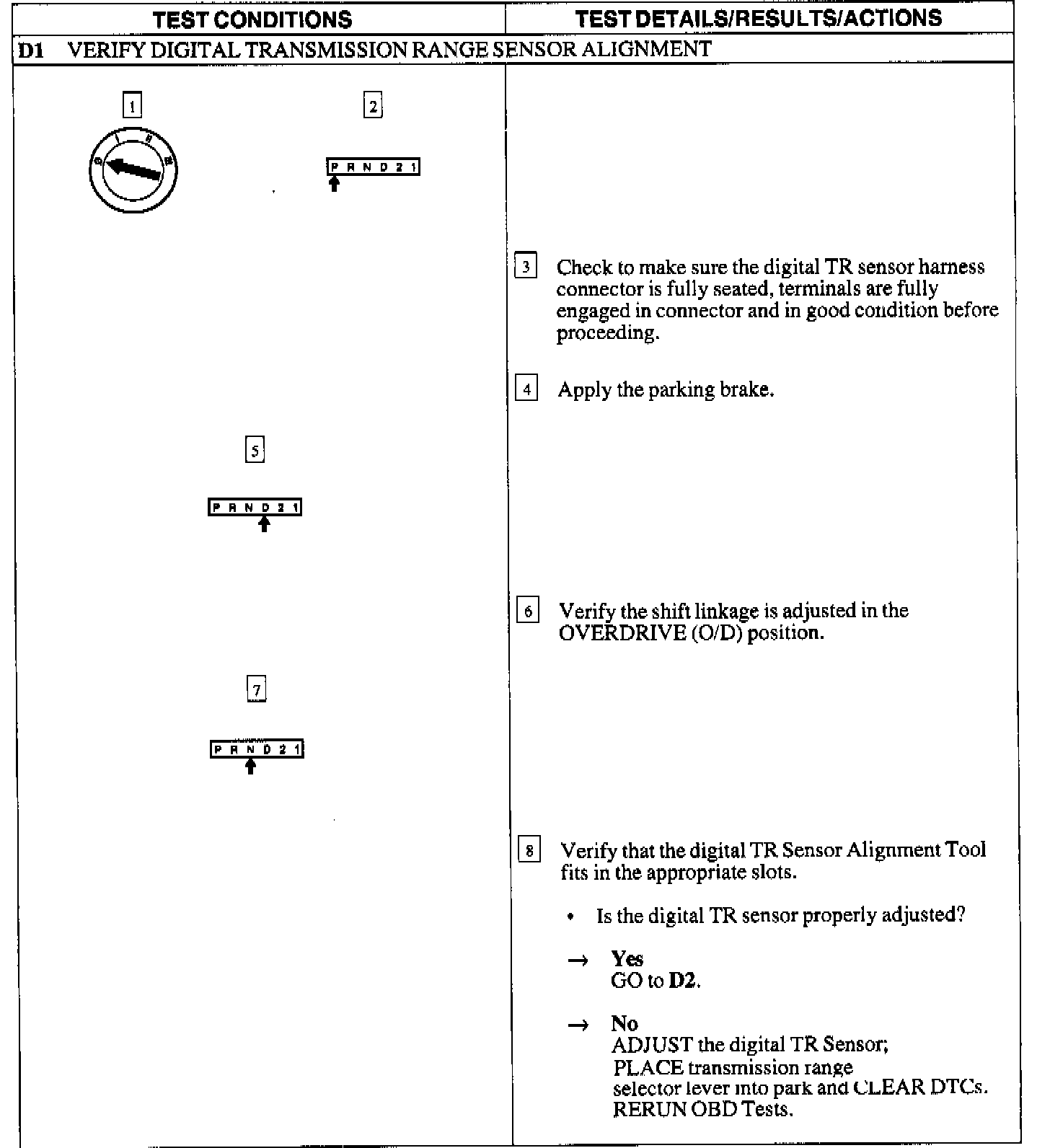 NOTE: Refer to Digital Transmission Range (TR) Sensor Illustration preceeding these pinpoint tests.