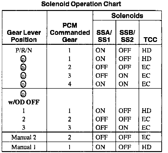 Shift Solenoid Operation Chart