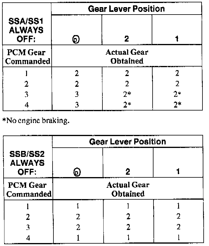 SHIFT SOLENOID FAILURE MODE CHART "ALWAYS OFF"