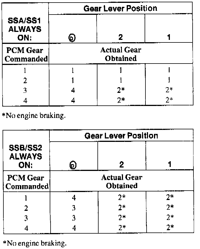 SHIFT SOLENOID FAILURE MODE CHART "ALWAYS ON"