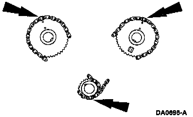 10. Install the timing chain/belt on the camshaft sprocket with the two chain links and timing marks aligned.