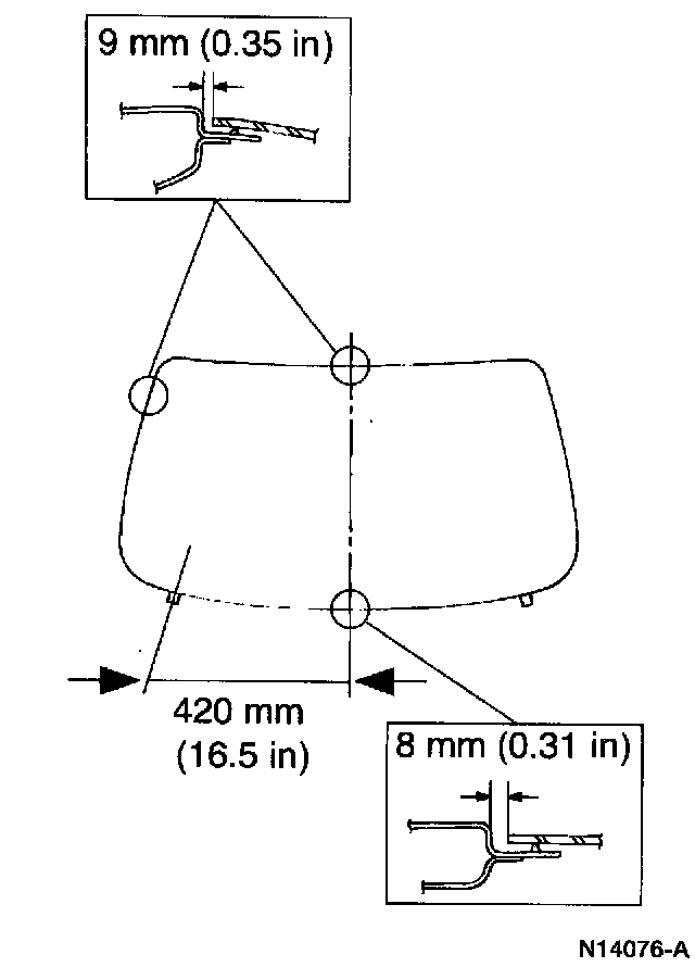 - Align the [1][2]back window glass from the bottom center point of the glass out to the two spacers at the bottom of the pinch weld.