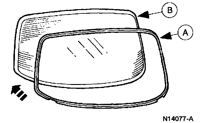 2. Install the (A) [1][2]back window glass moulding on the (B) back window glass perimeter.