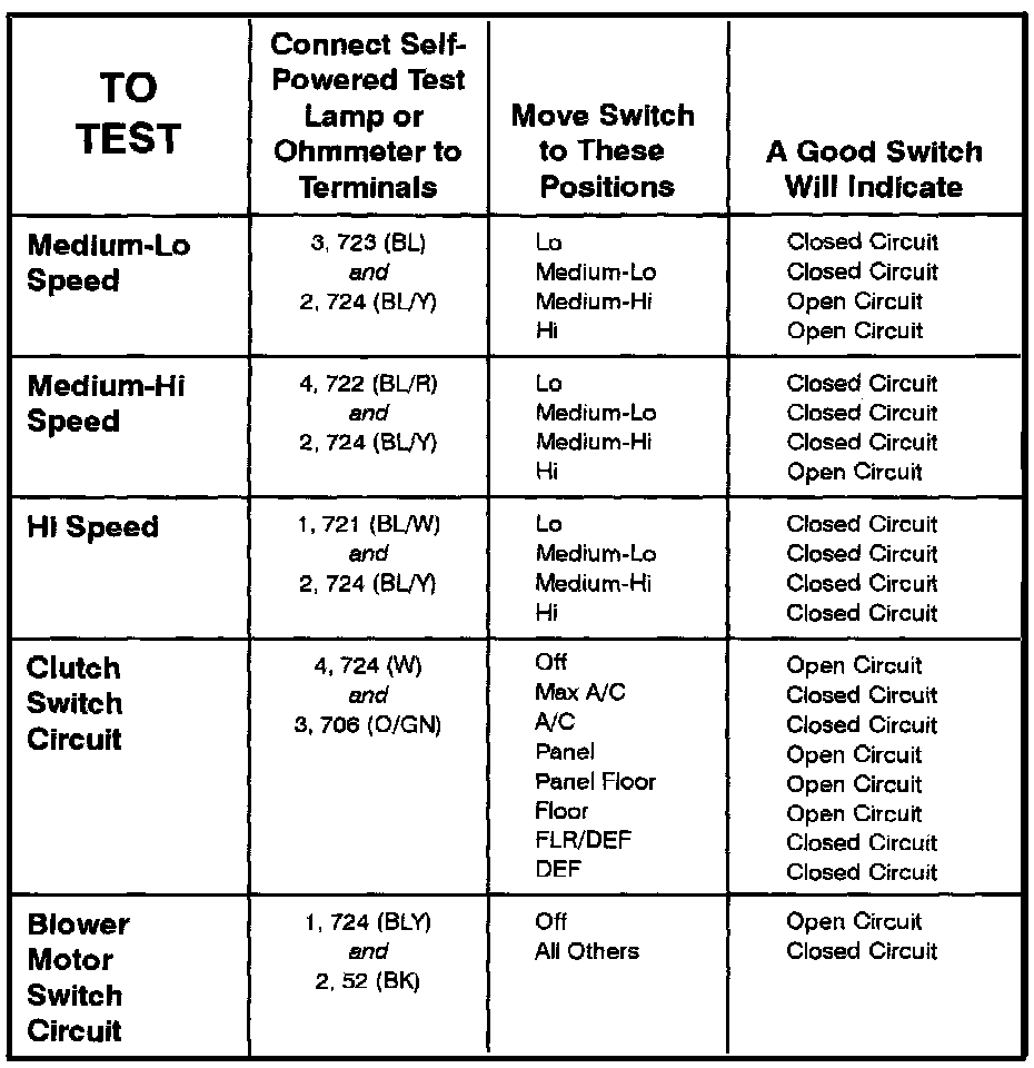 A/C-/Heater Control Assembly - Component Testing Procedure: