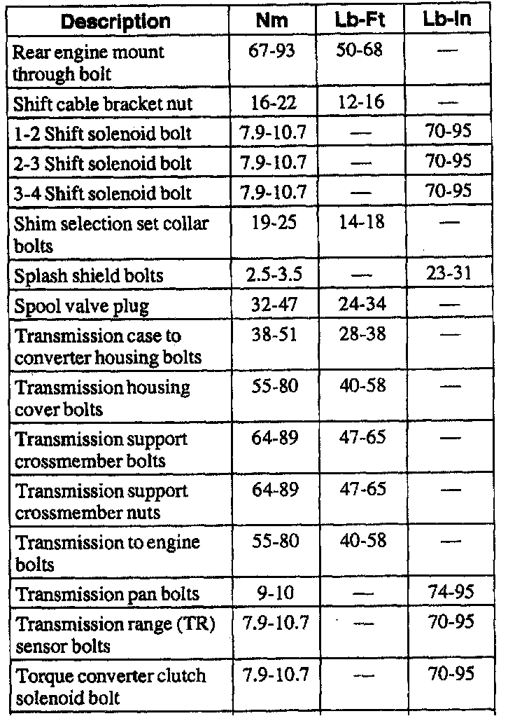 A/T Torque Data