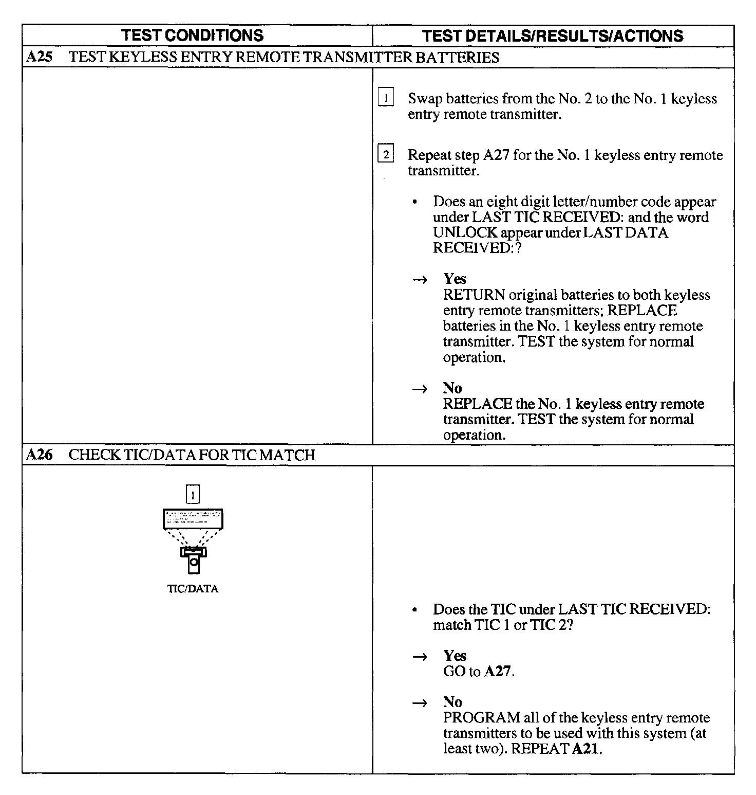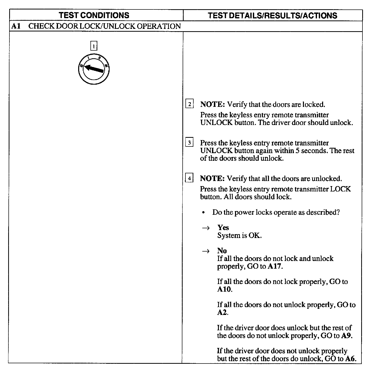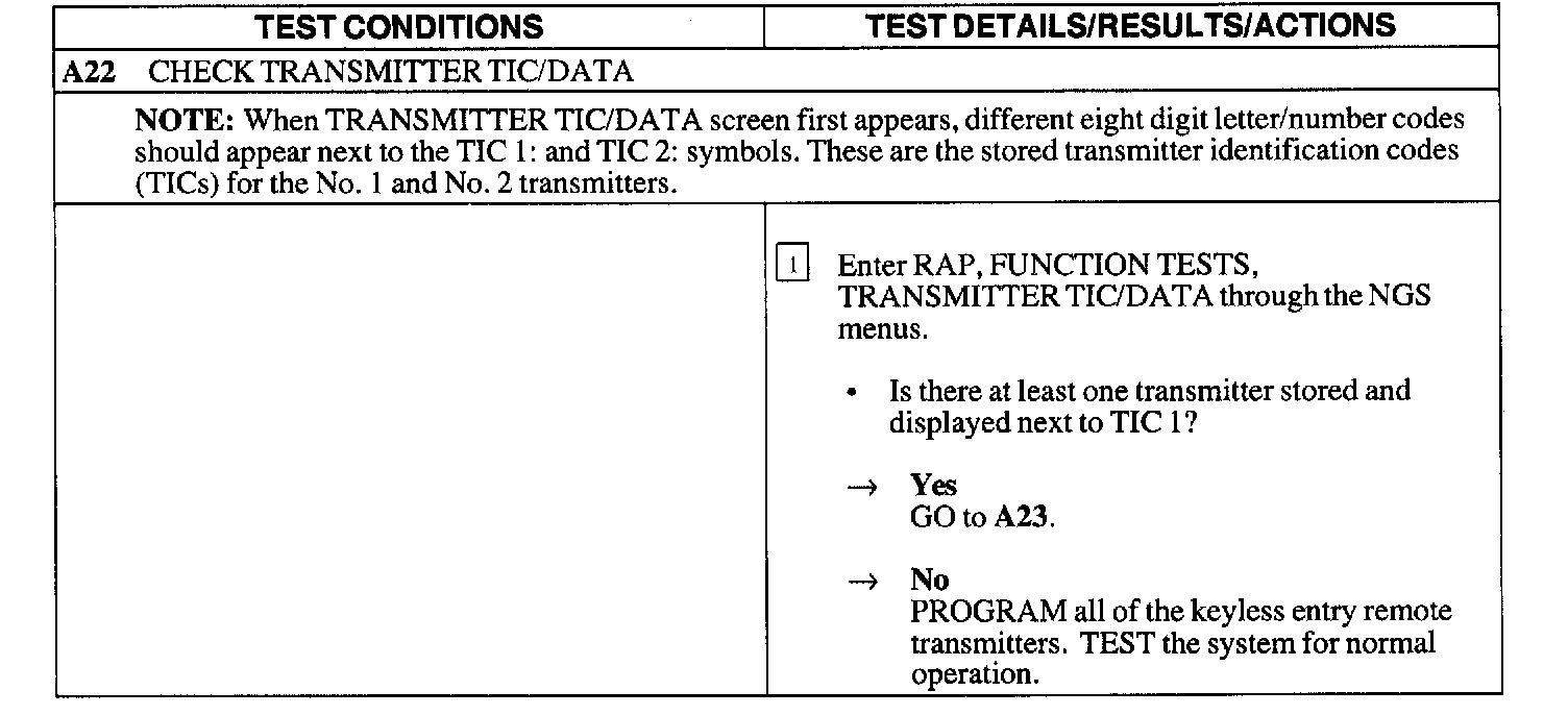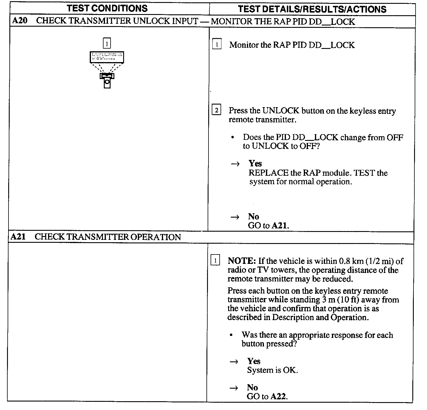 Test A : Doors Do Not Lock/Unlock W/Remote Transmitter
