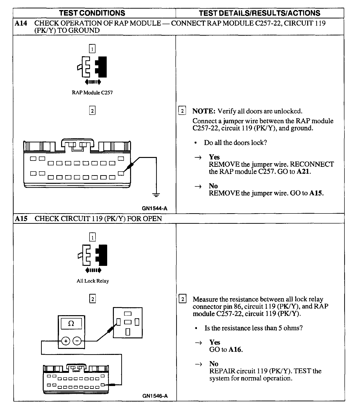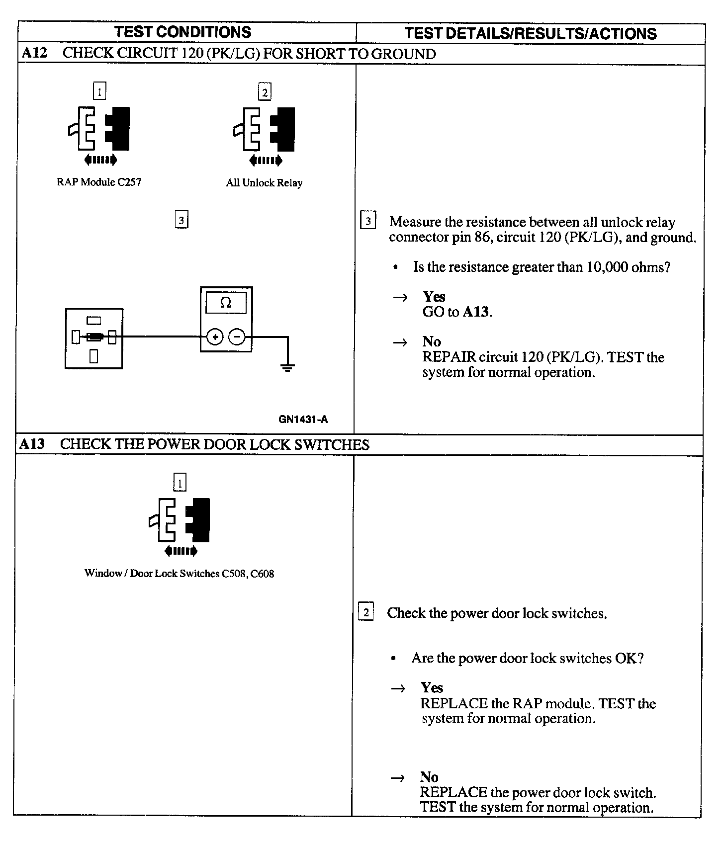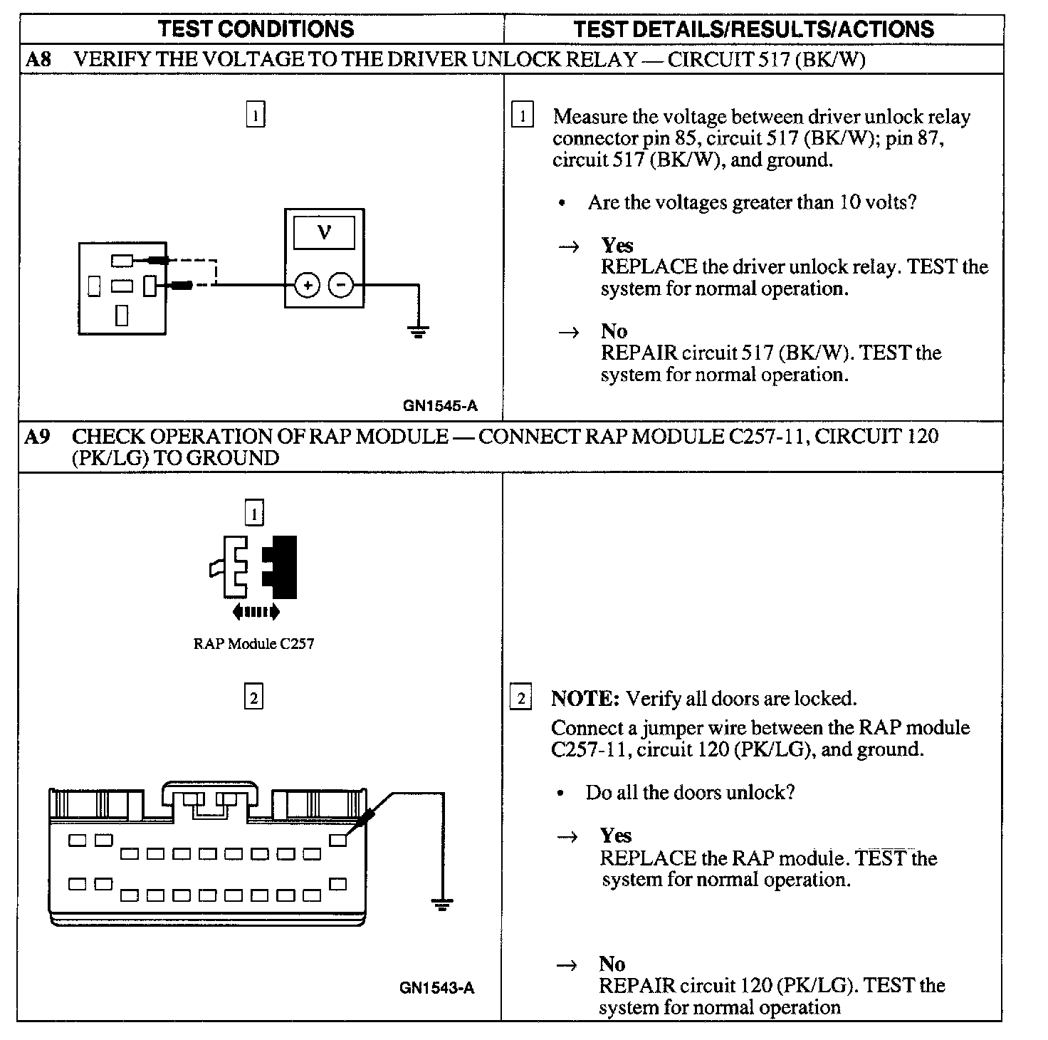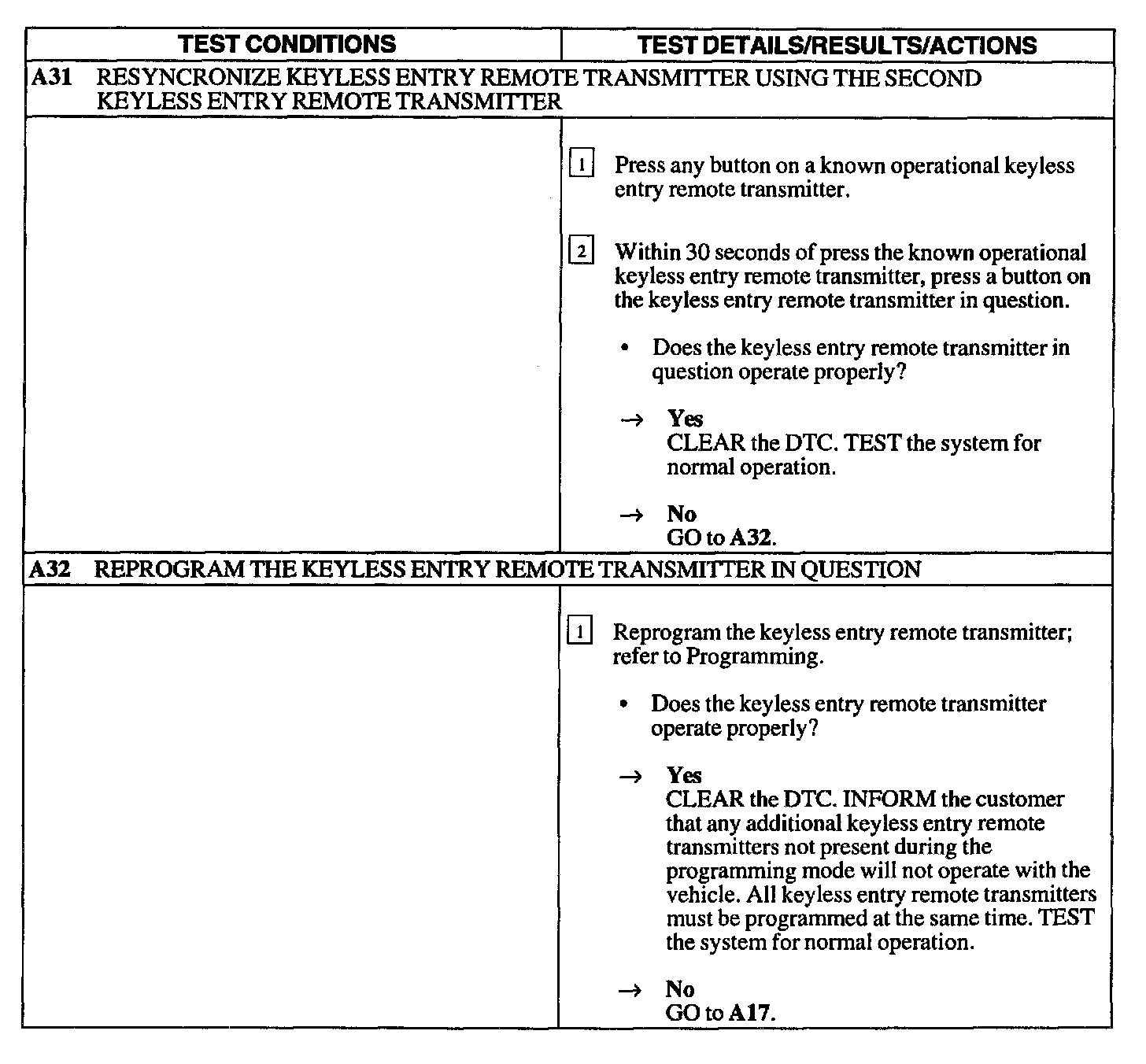 Test A : Doors Do Not Lock/Unlock W/Remote Transmitter