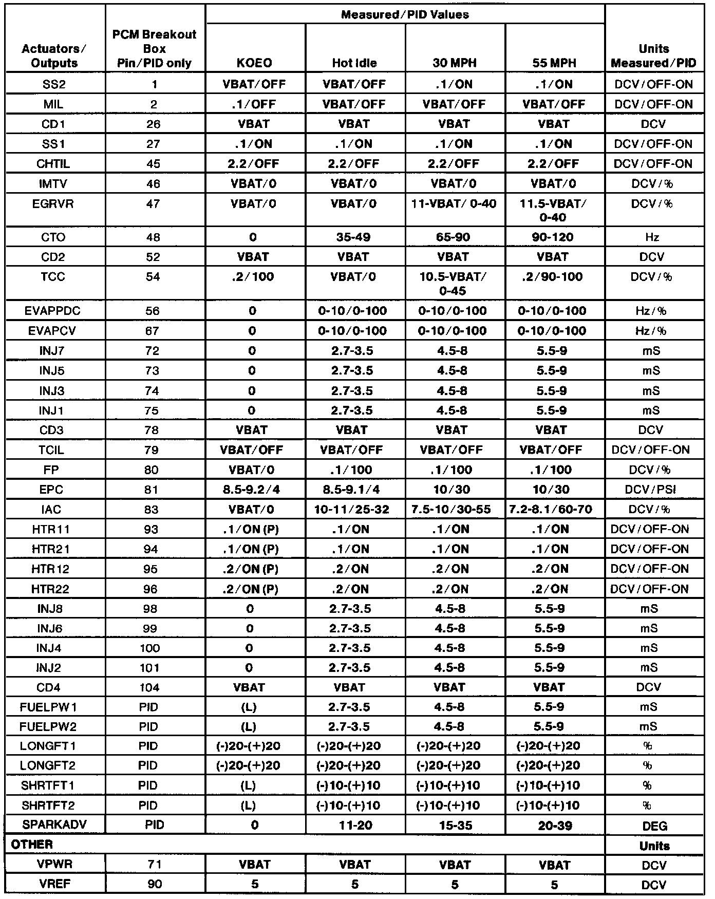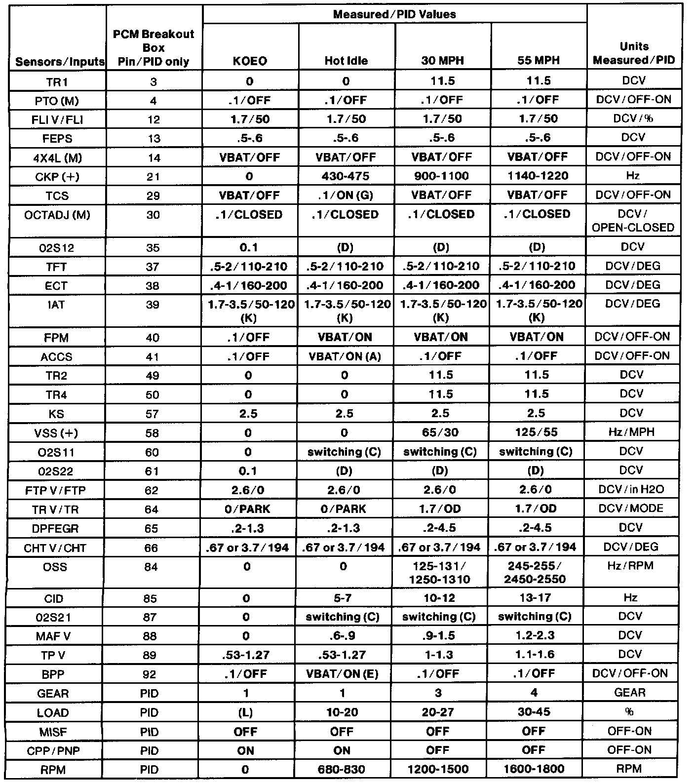 H. Values shown are commanded by the Powertrain Control Module (PCM) and may not be actual.