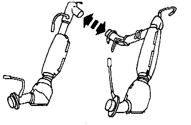 13. Separate the LH and RH three-way catalytic converters.