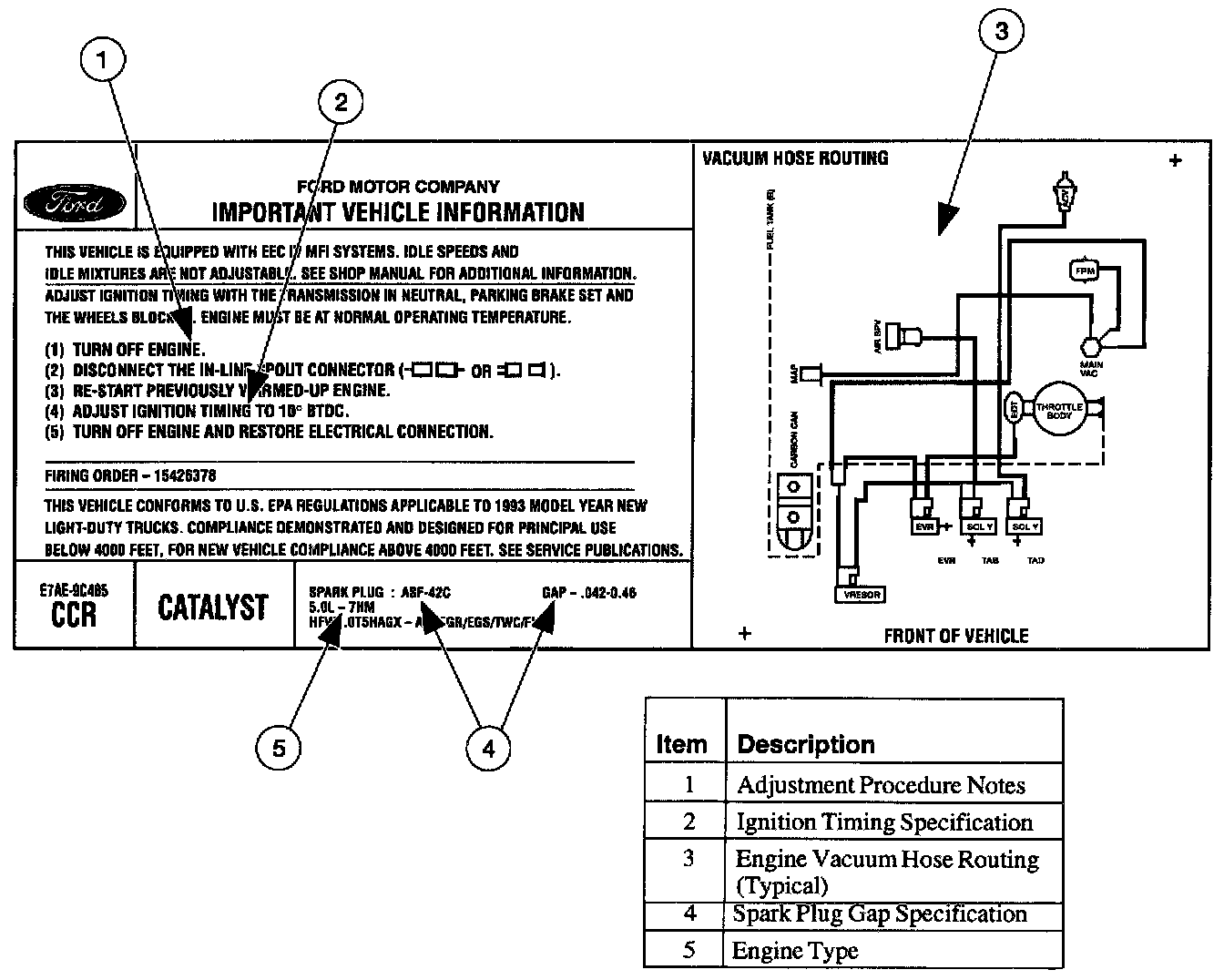 The Vehicle Emission Control Information (VECI) decal shows: