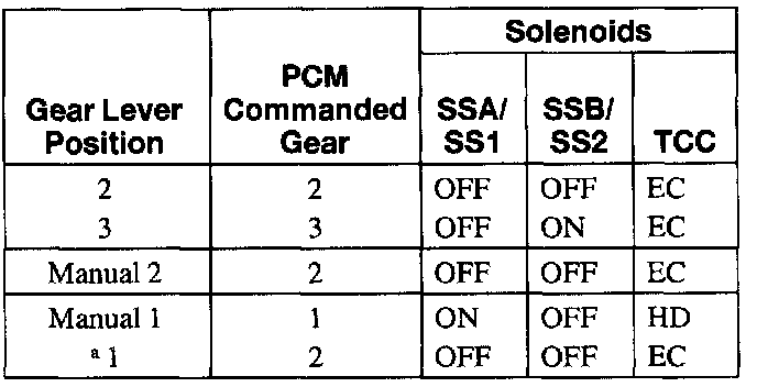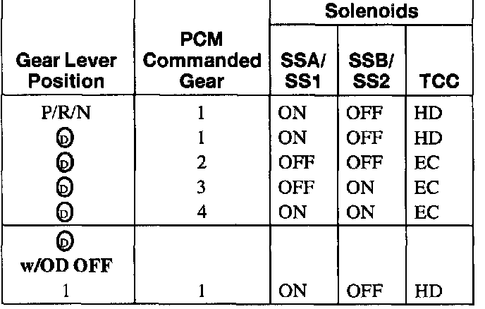 Two on/off shift solenoids provide gear selection of first through fourth gears by controlling the pressure to the three shift valves. One unit containing the two shift solenoids is located in the main control valve body. The shift solenoids are two-way normally open style.