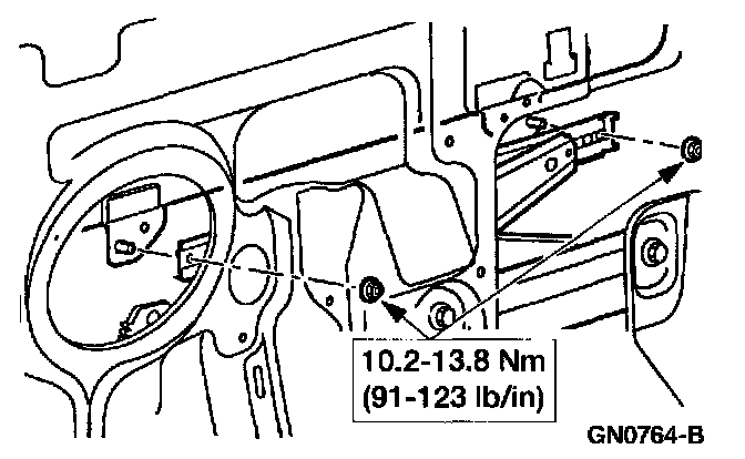6. Remove the window glass to regulator nuts.