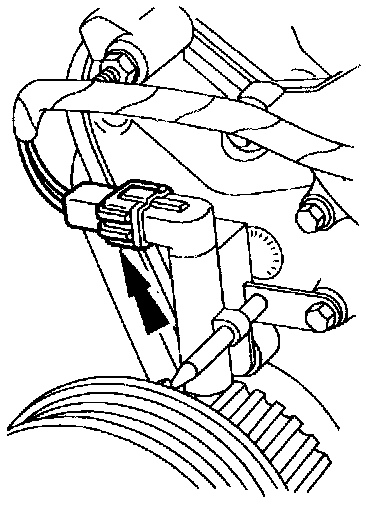 The Crankshaft Position Sensor is centered in lower front of engine compartment.