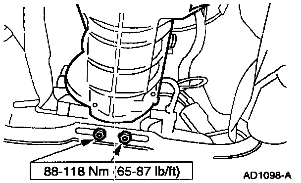 3. Remove the heat shield to transmission support crossmember bolts.