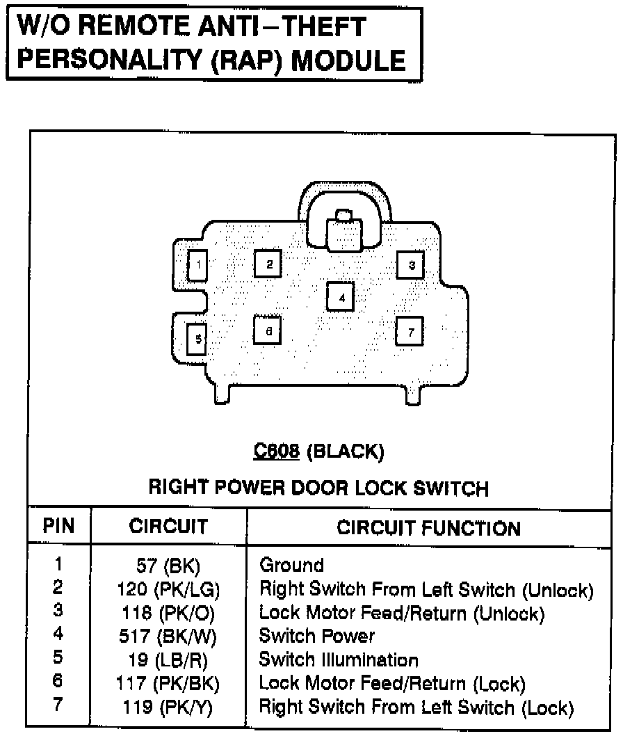 Right Power Door Lock Switch (Without Remote Anti-Theft Personality Module) (C608):