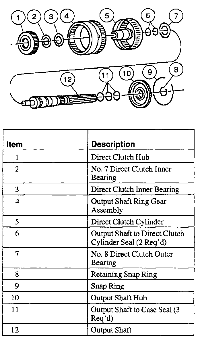 Output Shaft, Direct Clutch Cylinder and Ring Gear Disassembled View: