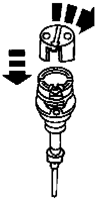 - Rotate the Syncro Positioning Tool until it engages the notch in the camshaft synchronizer housing.