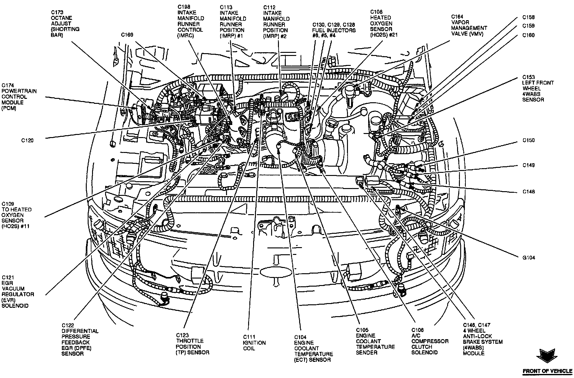 The Engine Coolant Temperature Sensor is located in front of the engine.