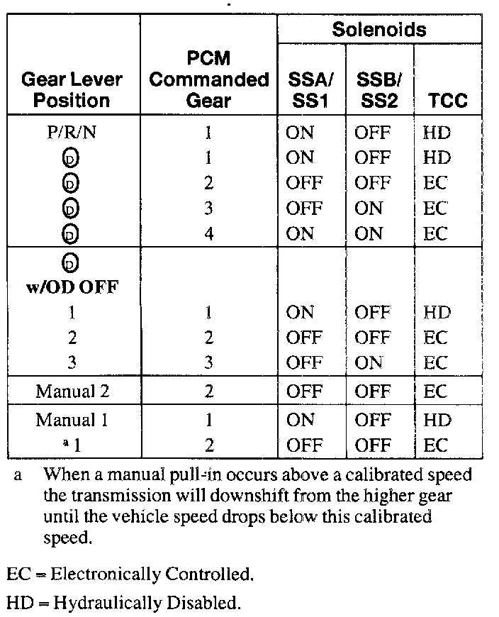 Shift Solenoid Operation Chart