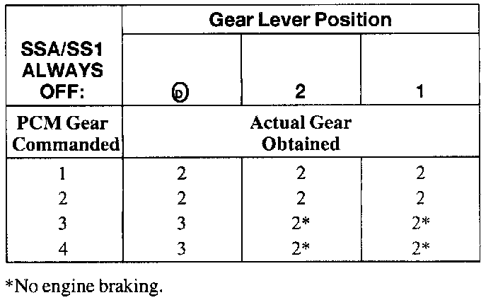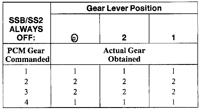 SHIFT SOLENOID FAILURE MODE CHART "ALWAYS OFF"