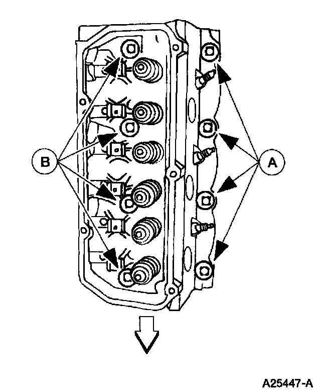 Install the four new (A) short cylinder head bolts and the four new (B) long cylinder head bolts.