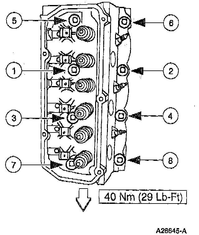 Tighten the cylinder head bolts to 29 Lb-Ft in the sequence shown.