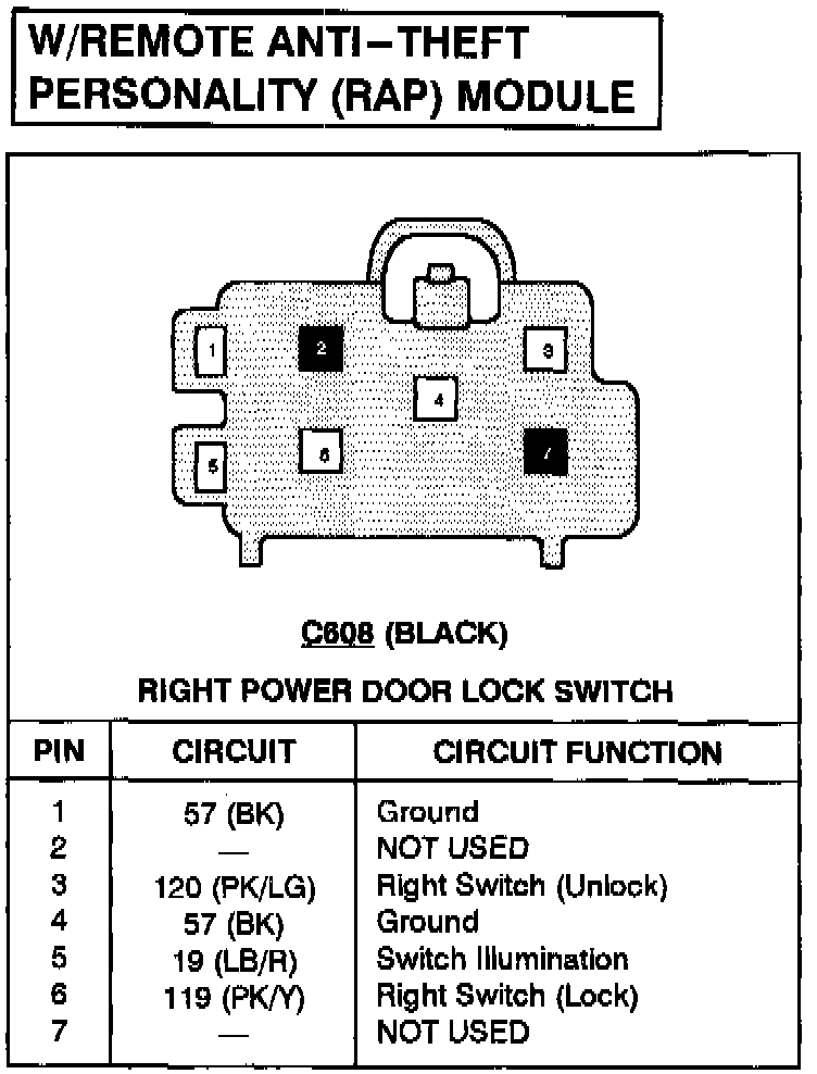 Right Power Door Lock Switch (With Out Remote Anti-Theft Personality Module) (C608):