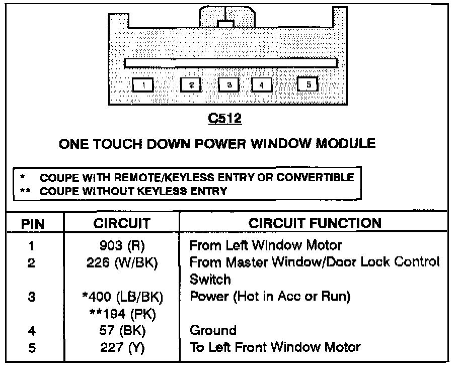 Power Window Control Module