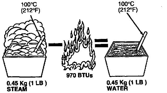 Conversely, the vapor will give off 970 BTUs in condensing back to water.