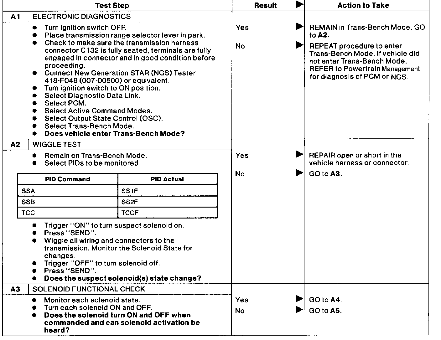 NOTE: Read and record all DTCs. All digital TR Sensor and VSS DTCs must be repaired before entering Output State Control (OSC).