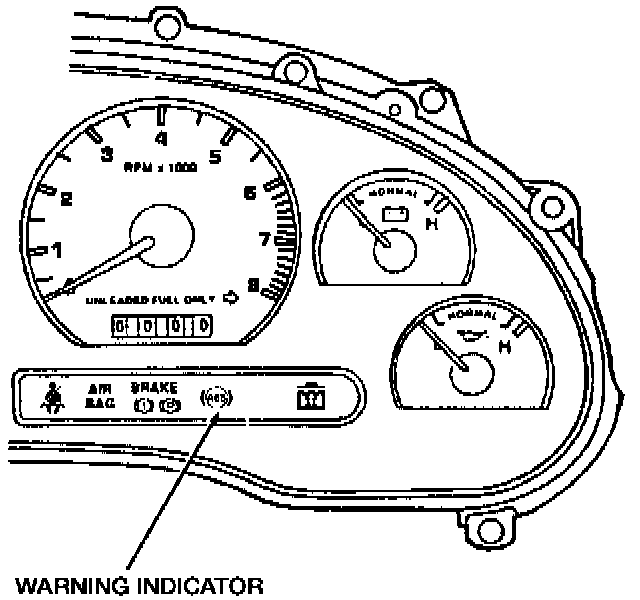The anti-lock control module also has on-board diagnostic capabilities and stores Diagnostic Trouble Codes (DTCs) in its memory. If a fault is detected in the system, a DTC will be stored in the anti-lock brake control module memory, and the instrument panel ANTI-LOCK warning indicator will illuminate when the engine is running.