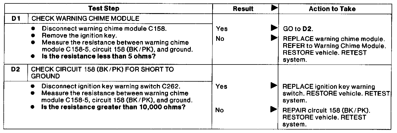 Test D: Key-In-Ignition Warning On Without Key In Ignition