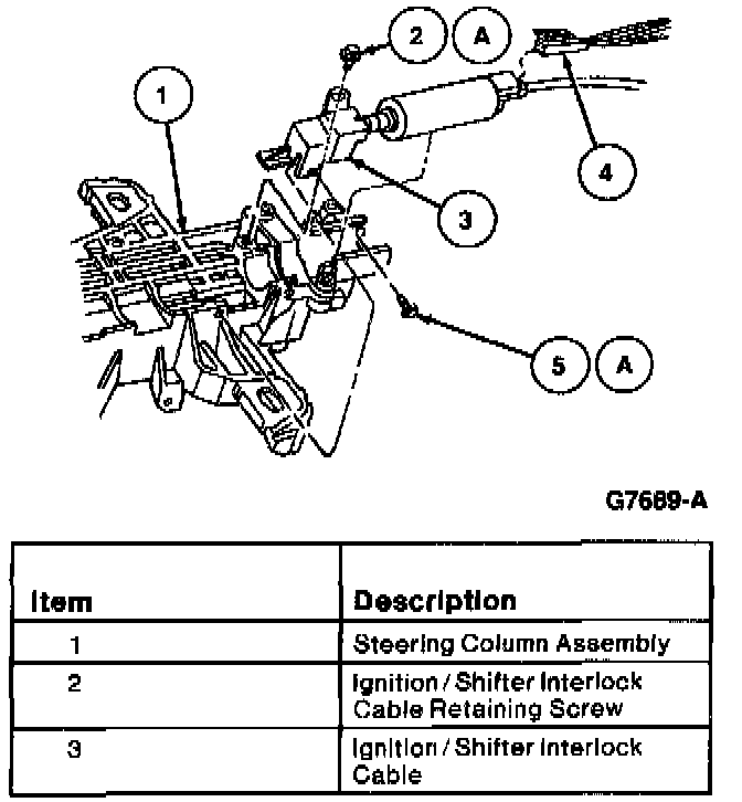 6. Remove ignition/shifter interlock cable retaining screws from steering column assembly.