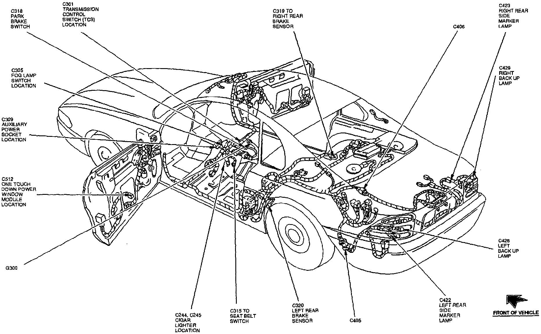 The One Touch Down Power Window Module is located at the lower rear of the LH door.