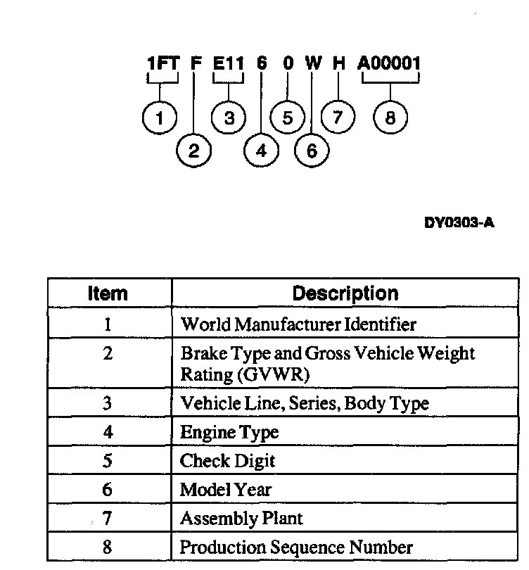 The Vehicle Identification Number (VIN) is a seventeen-digit combination of letters and numbers. The VIN is stamped on a metal tab riveted on the instrument panel top upper left of the dash. The VIN number is also found on the Vehicle Certification (VC) label.