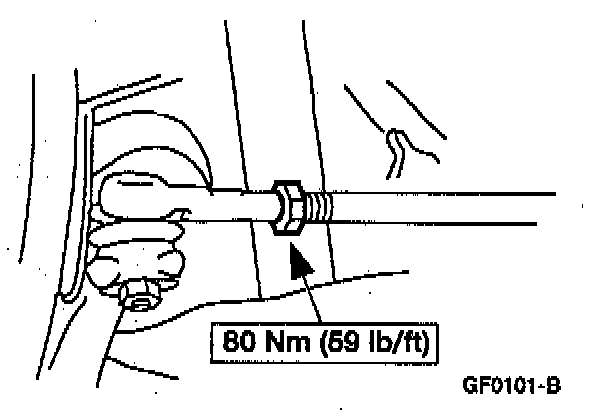 NOTE: Do not allow the steering gear bellows to twist when the front wheel spindle tie rod is rotated.
