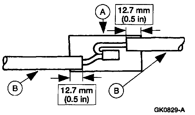 5. Position the (A) heat shrink tube over the (B) wire repair.