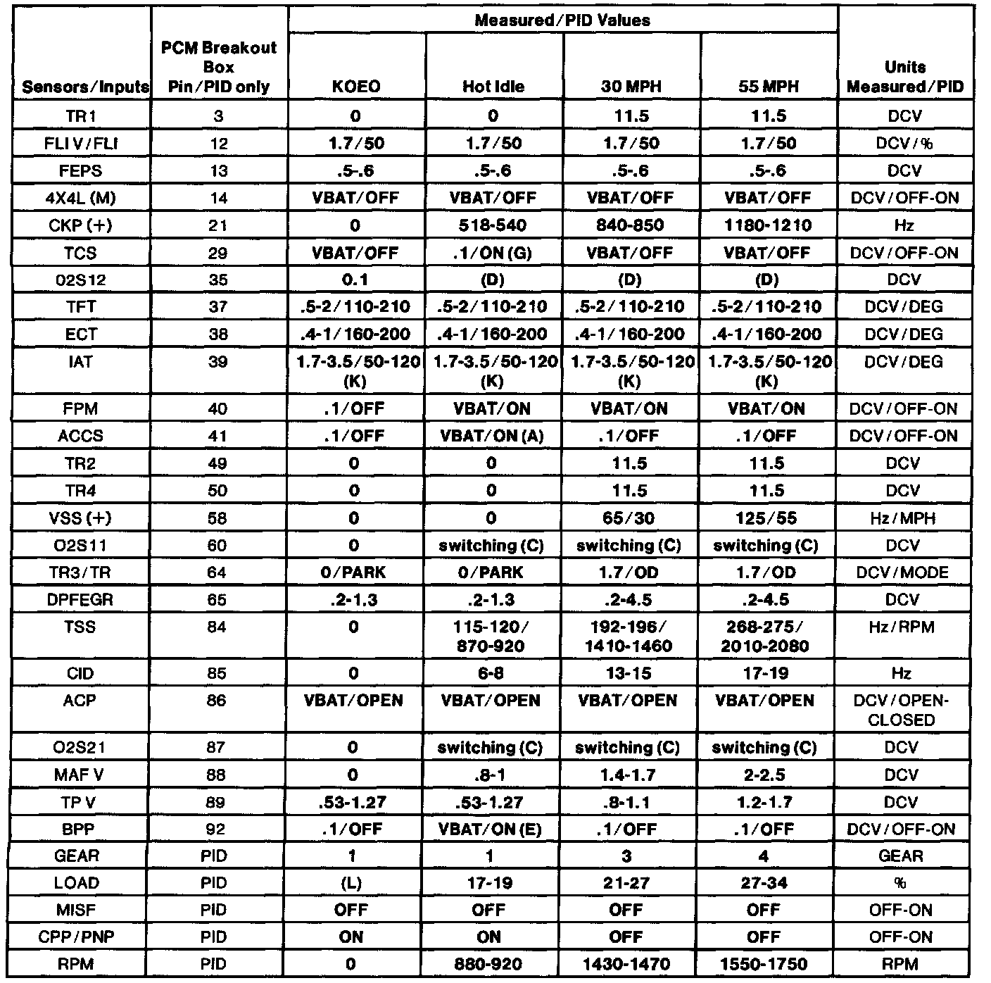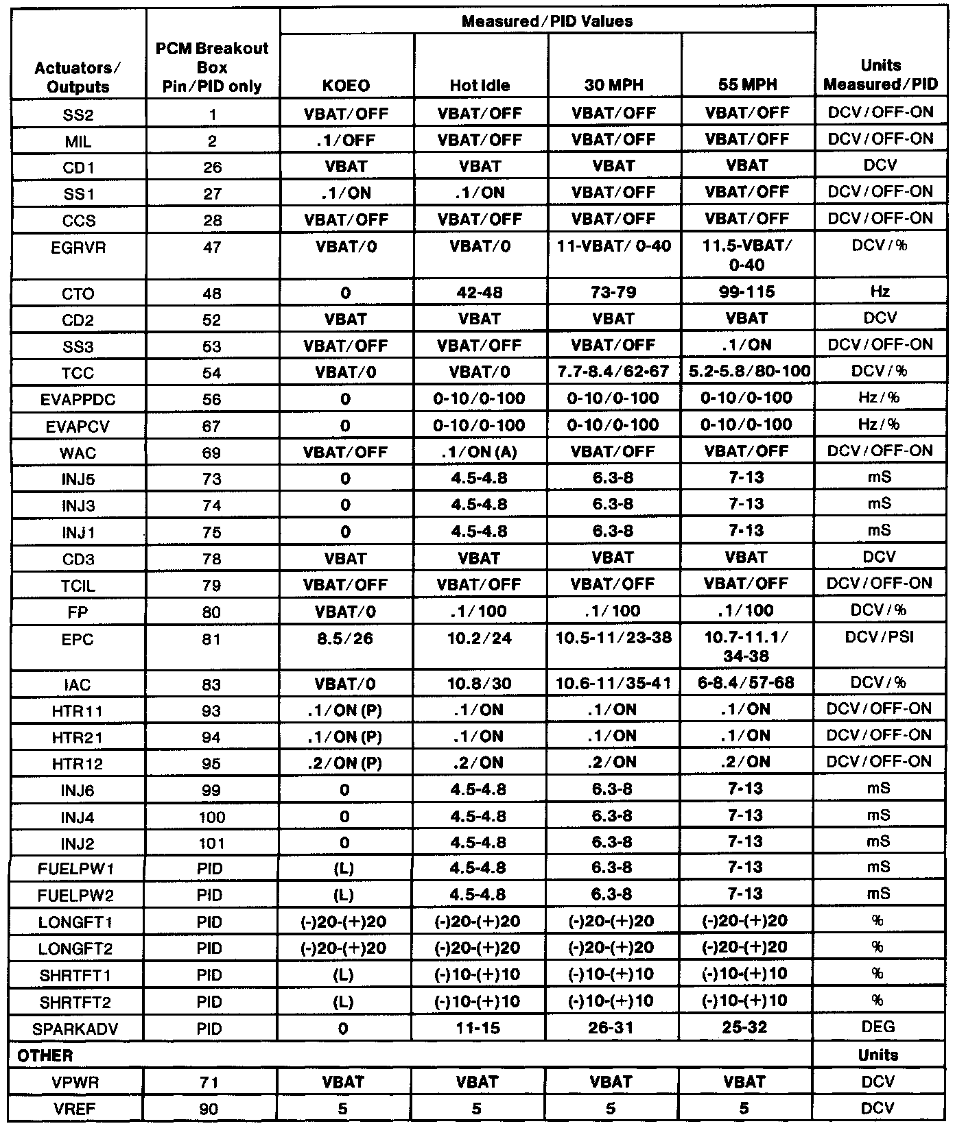 H. Values shown are commanded by the Powertrain Control Module (PCM) and may not be actual.