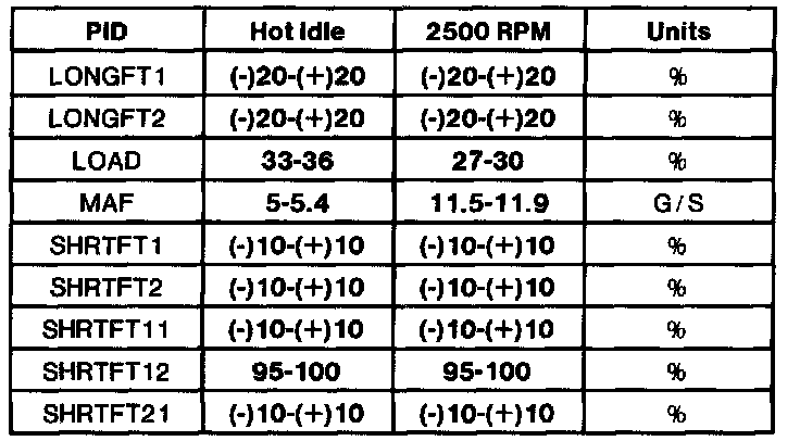 - All generic OBD II readings under no load (PARK or NEUTRAL).