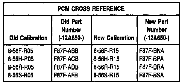 3. Refer to the following PCM Cross Reference Chant for correct calibration usage.