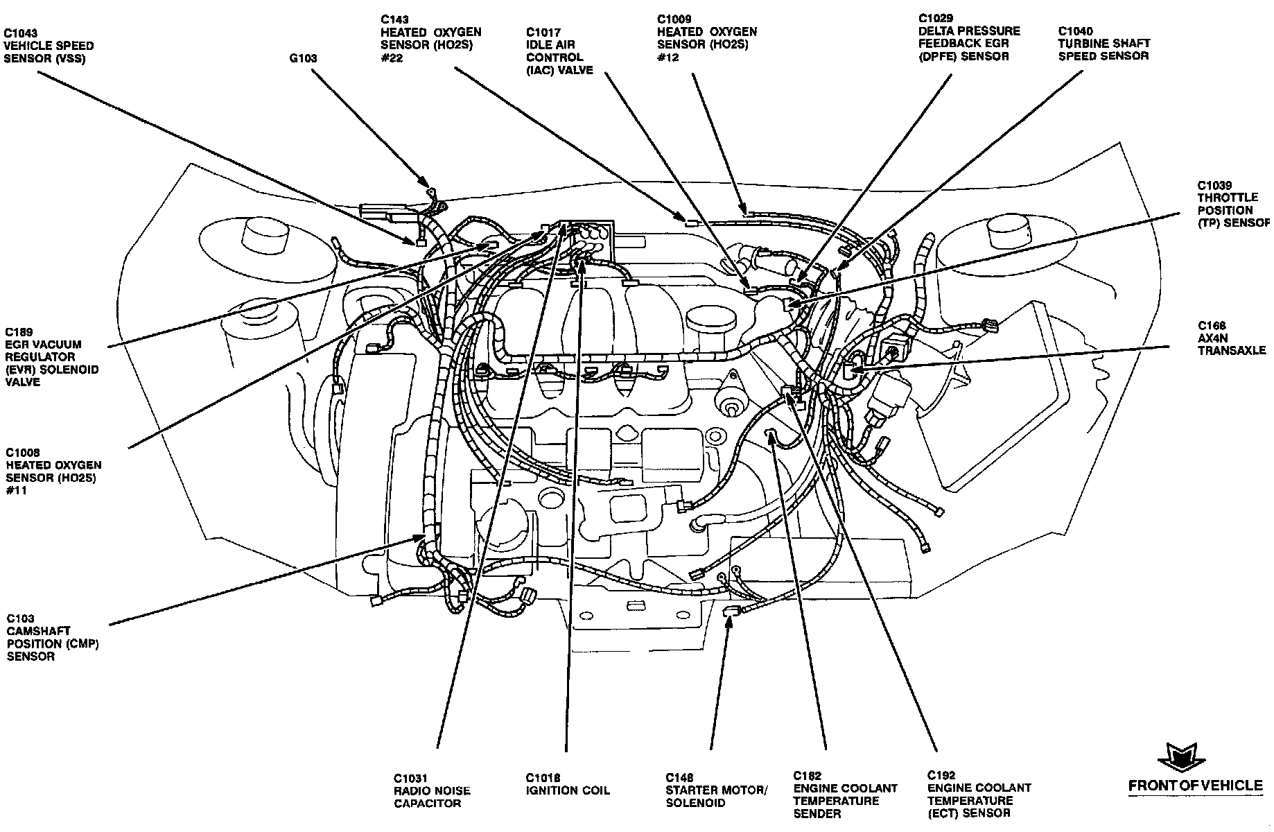 The Engine Coolant Temperature Sensor is located above left side of the engine block, near thermostat.