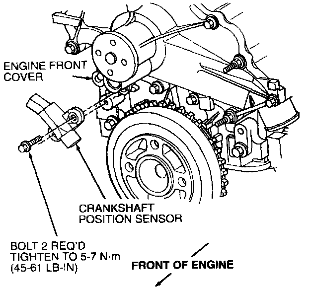 The signal generated from the crankshaft position sensor is called the crankshaft position signal, which provides base timing and crankshaft speed (rpm) information to the Powertrain Control Module (PCM). Base timing is set at 10 ± 2 degrees Before Top Dead Center (BTDC) and is not adjustable.
