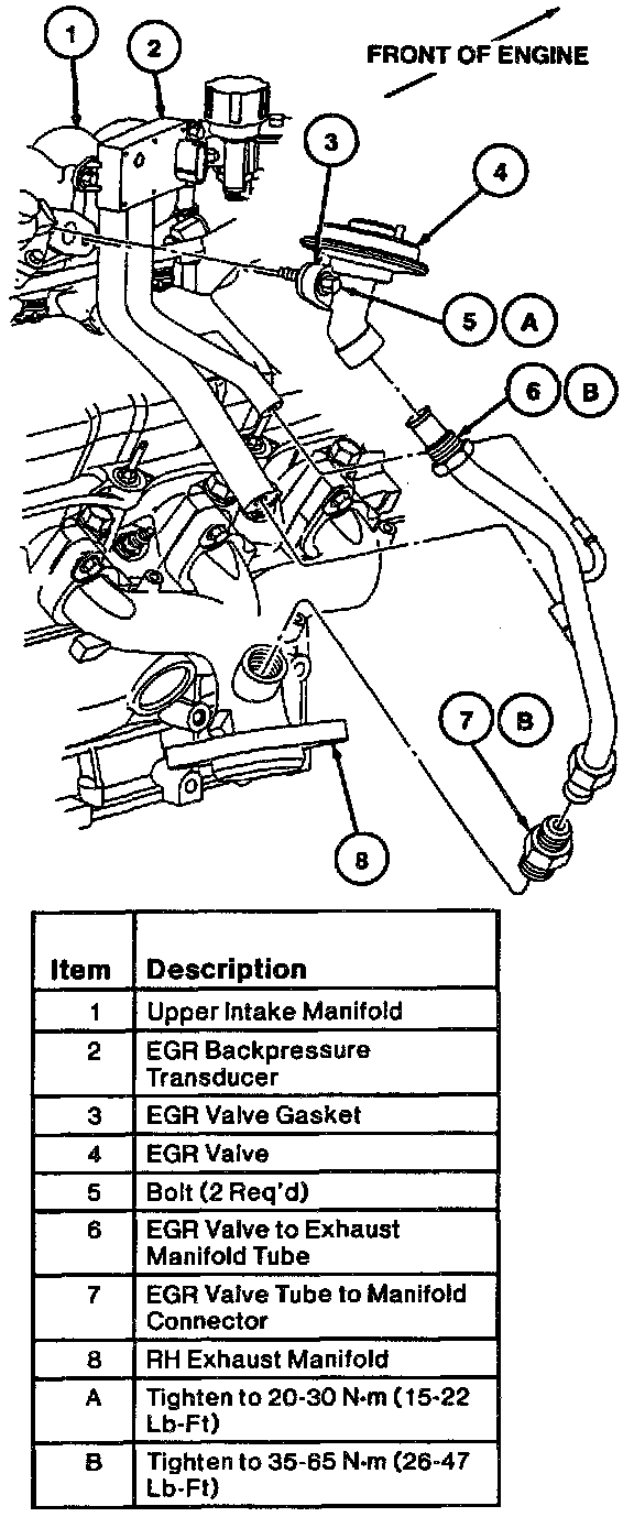 4. On 3.0L (2V) engines, tighten EGR valve to-manifold tube connector at EGR valve to 35-65 Nm (26-47 lb-ft).
