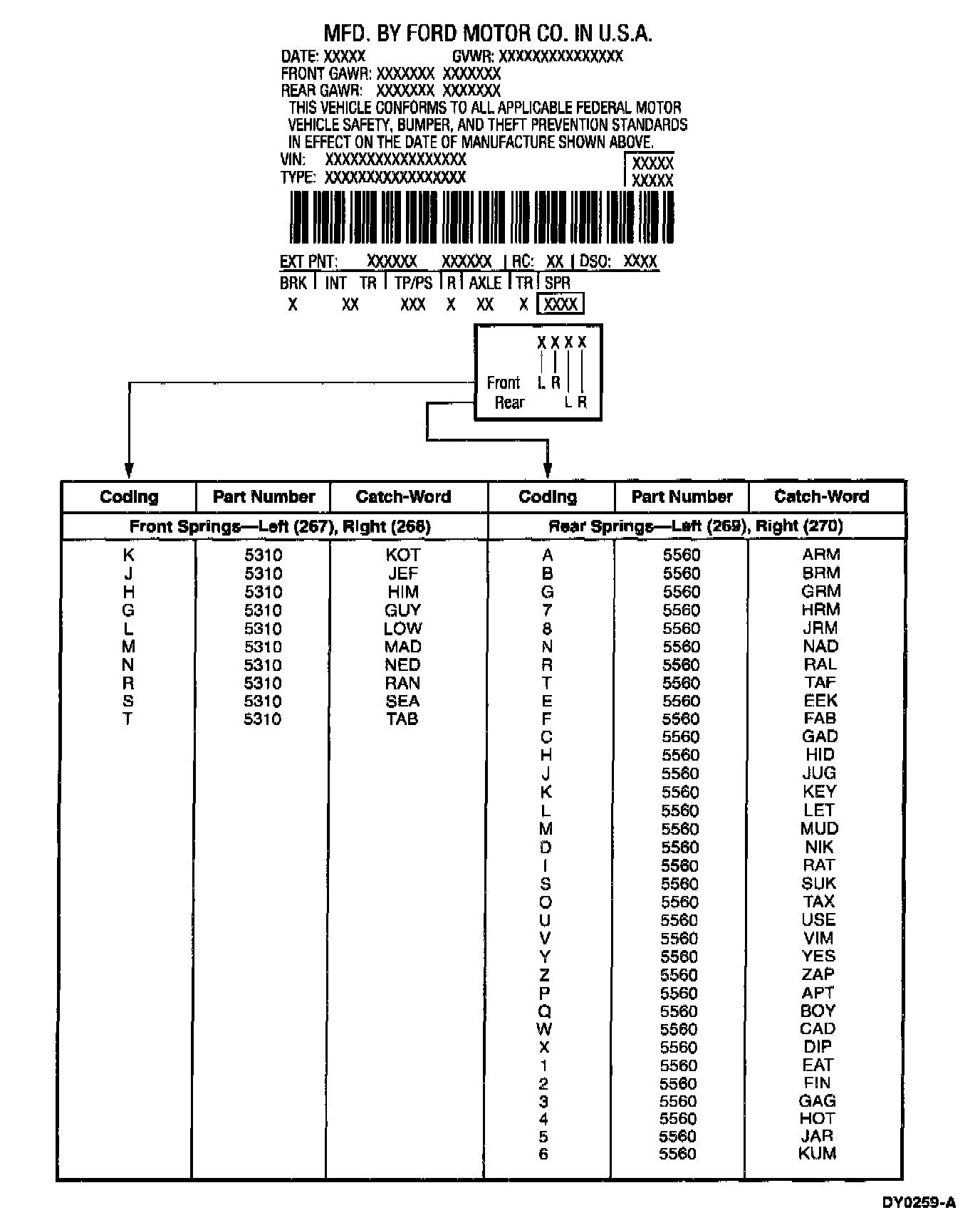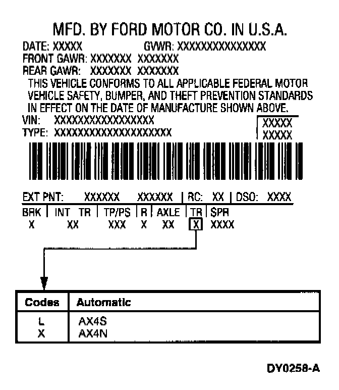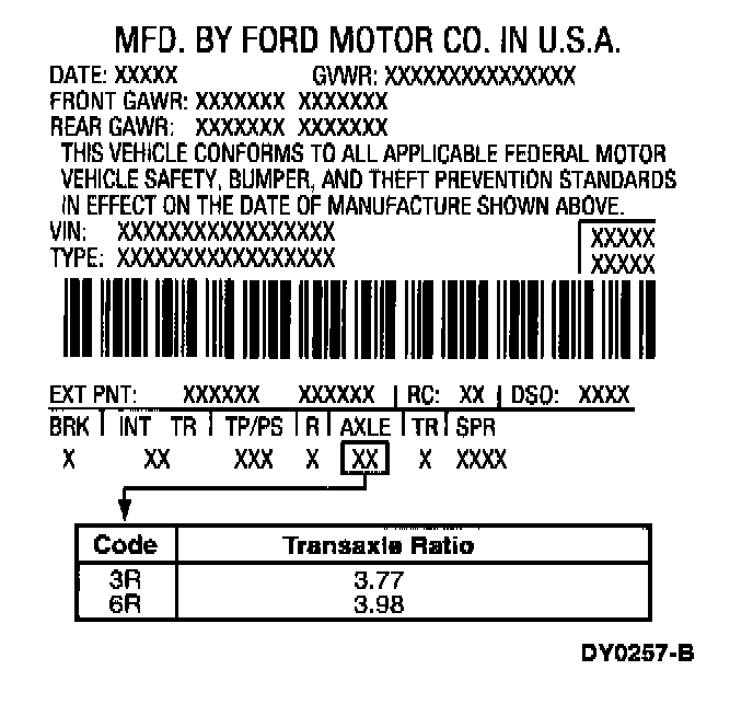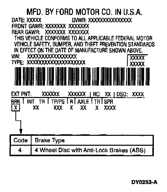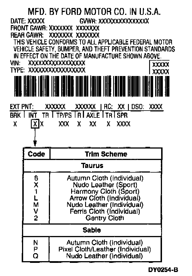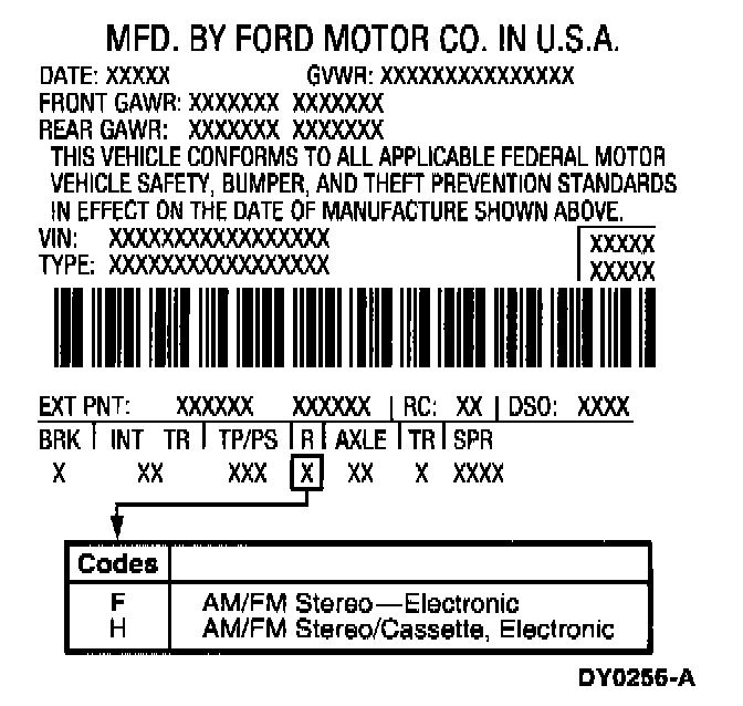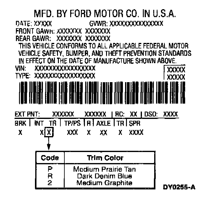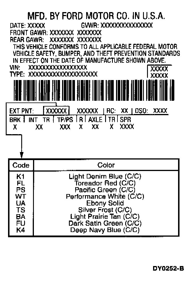 The remaining information on the VC Label consists of the following vehicle identification codes: