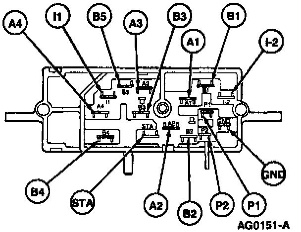 Disconnect connector C299 from the ignition switch. Test the ignition switch continuity as follows. Connect a self-powered test lamp or ohmmeter between the blade terminals indicated on the chart in the illustration. No continuity between any blade and the ground terminal should exist in any ignition switch position except the proof and ground pins (P-1, P-2 and GND) in the START position only.