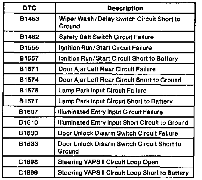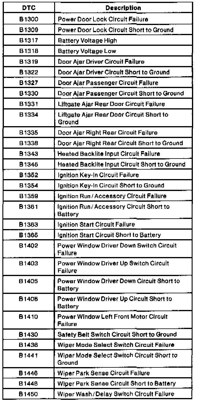 Wiggle Test Diagnostic Test Code (DTC) Index